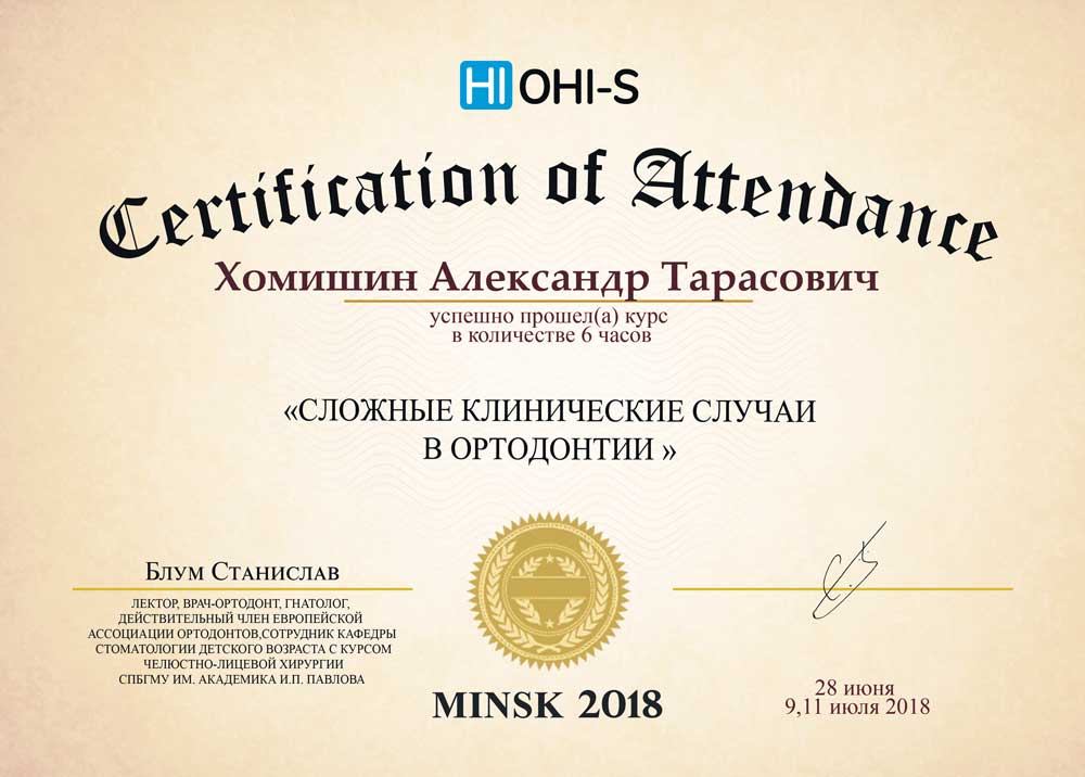 Сложные клинические случаи в ортодонтии (сертифікат) Оприлюднено 10 Листопада, 2019 автором Олександр Хомишин Прослухав курс вебінарів від Станіслава Блума