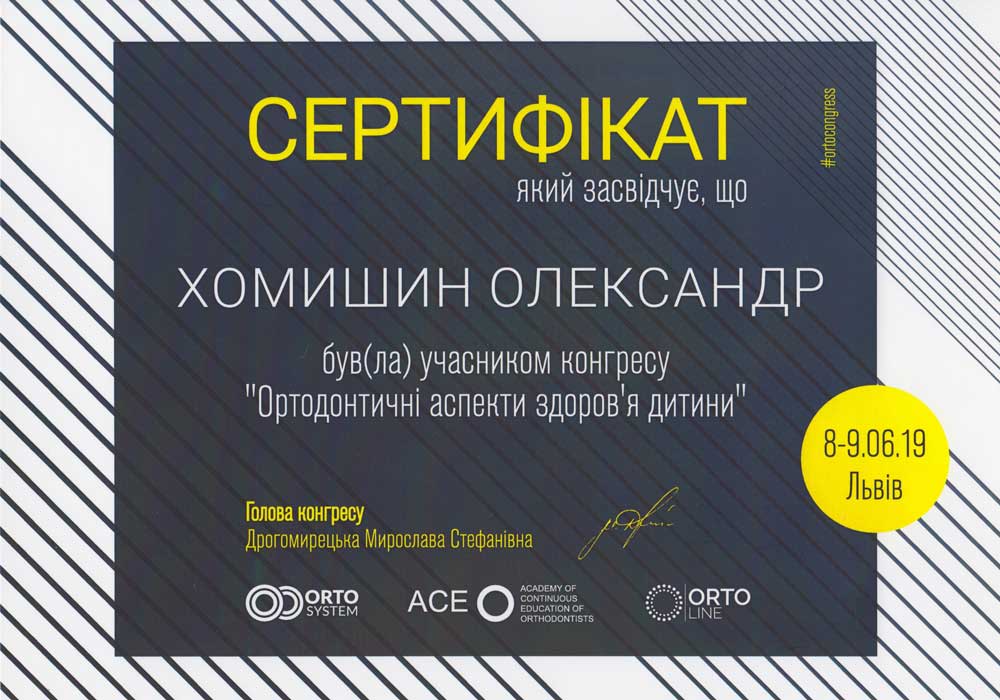 Ортодонтичні аспекти здоров’я дитини (сертифікат) Оприлюднено 10 Листопада, 2019 автором Олександр Хомишин 2019 року відвідав ортодонтичний конгрес у м.Львів